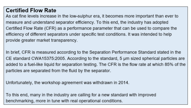 The density, viscosity, feed flow rate, and temperature of the fuel are all critical factors in determining the effectiveness of the separator. As the available choice of fuels changes in the low-sulphur era, crews will need to maintain a much higher level of understanding than they have been able to get away with up to now.