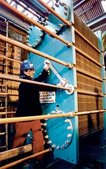 For years Brunner Mond used tubular Caisse heat exchangers as ammonia still condensers at their soda ash plant in Northwich, England. However, as time passed, the tubes became older and more prone to corrosion and began to leak. The plant engineers faced the problem of whether to shut down the process for re- tubing or find an alternative method. The solution was an Alfa Laval plate heat exchanger condenser which not only improved productivity and reduced maintenance but took only a fraction of the space.